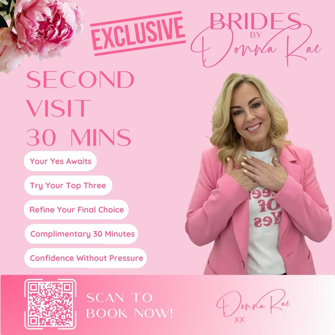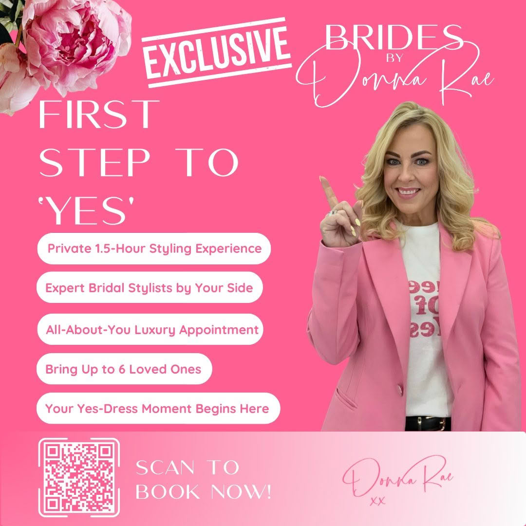Your dream dress journey begins here and we’re thrilled to be part of it! Enjoy a 1.5-hour private appointment where Donna and her team act as your personal bridal stylists, guiding you to the gown that takes your breath away. With seating for up to 6 guests, this unforgettable experience is all about YOU. A $60 consultation fee secures your spot. Let’s make this one of the most magical moments of your bridal story.