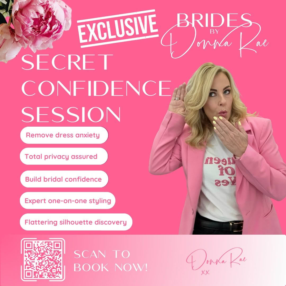 The Secret Confidence Session is a private, one-on-one styling appointment for brides who want to explore their shape, style, and comfort level before involving family or friends. It’s a pressure-free space, just you and your stylist to try dresses, discover what truly suits you, and build confidence without judgment. Perfect for brides who quietly worry about how they’ll look, this session helps you feel excited and ready to try on dresses with your loved ones.