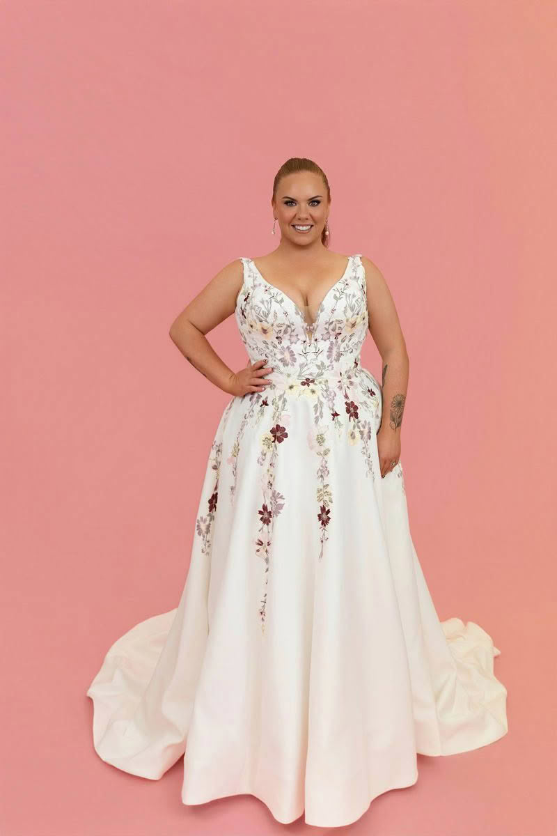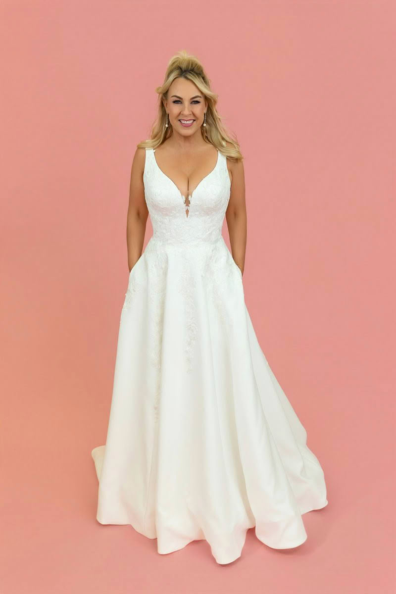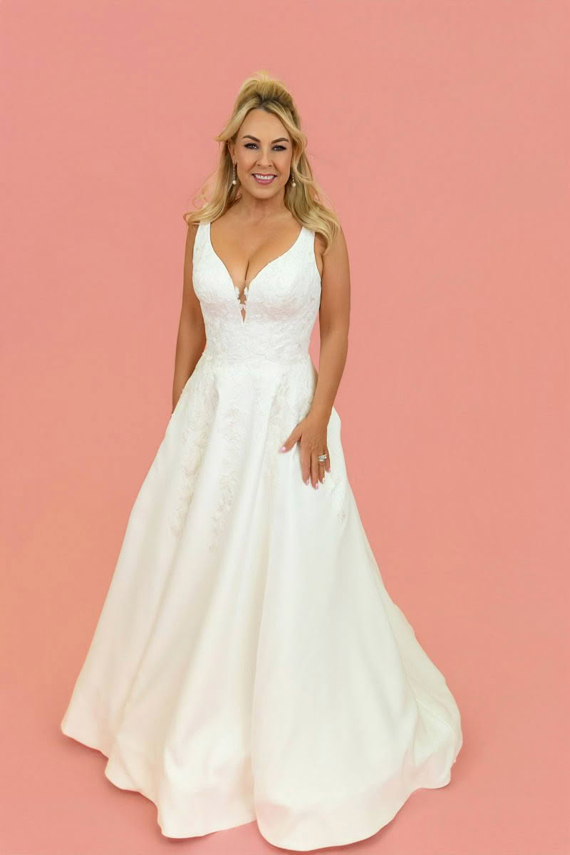 Elegant, romantic and effortlessly timeless, Radiant Star is designed for the bride who loves soft structure with delicate detail. The flattering bodice features beautiful floral lace with a deep illusion plunge neckline that adds a modern, feminine touch while still providing support.