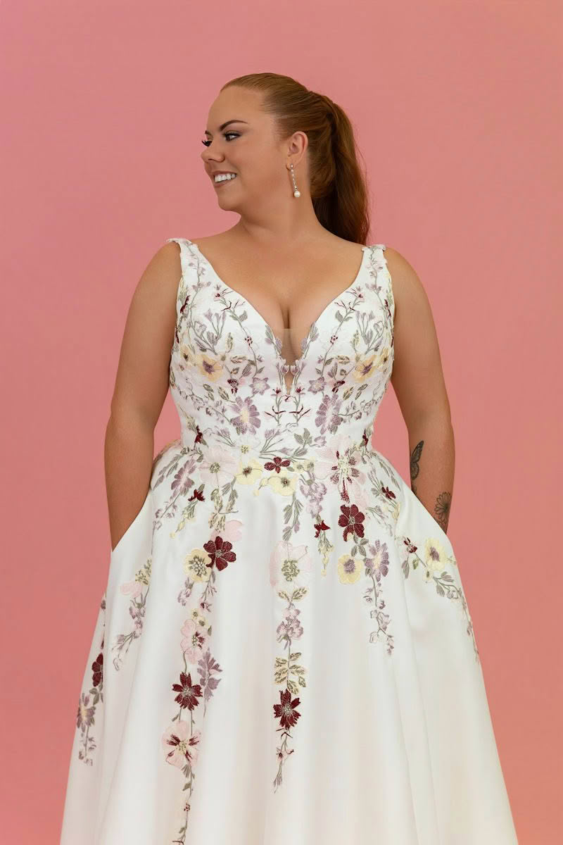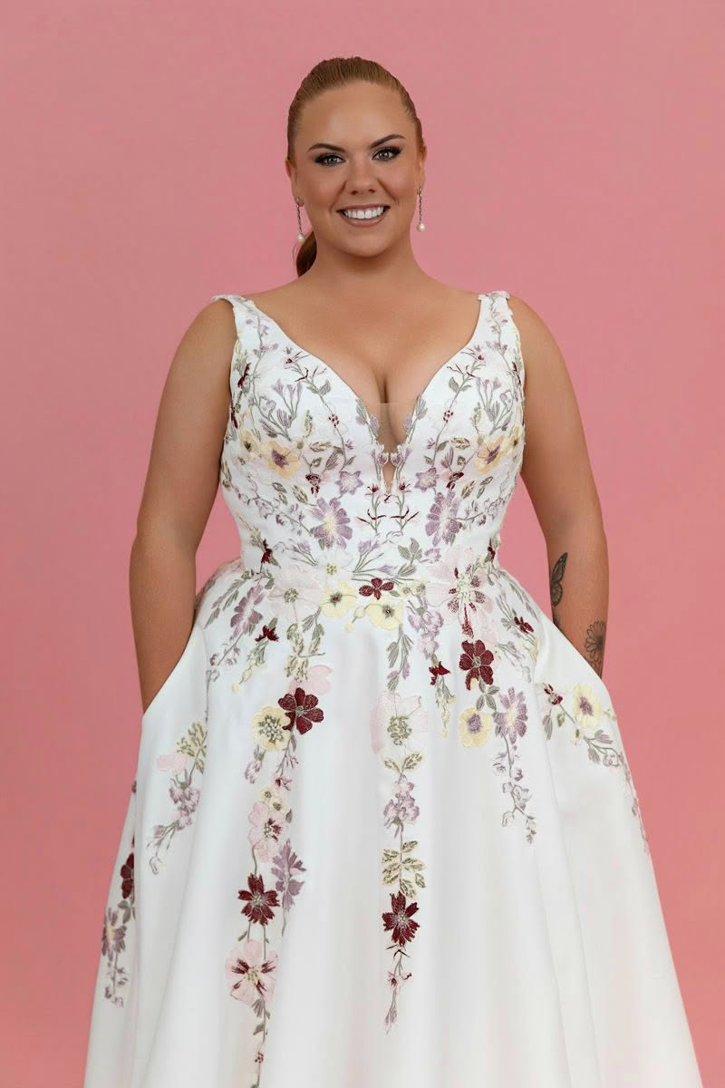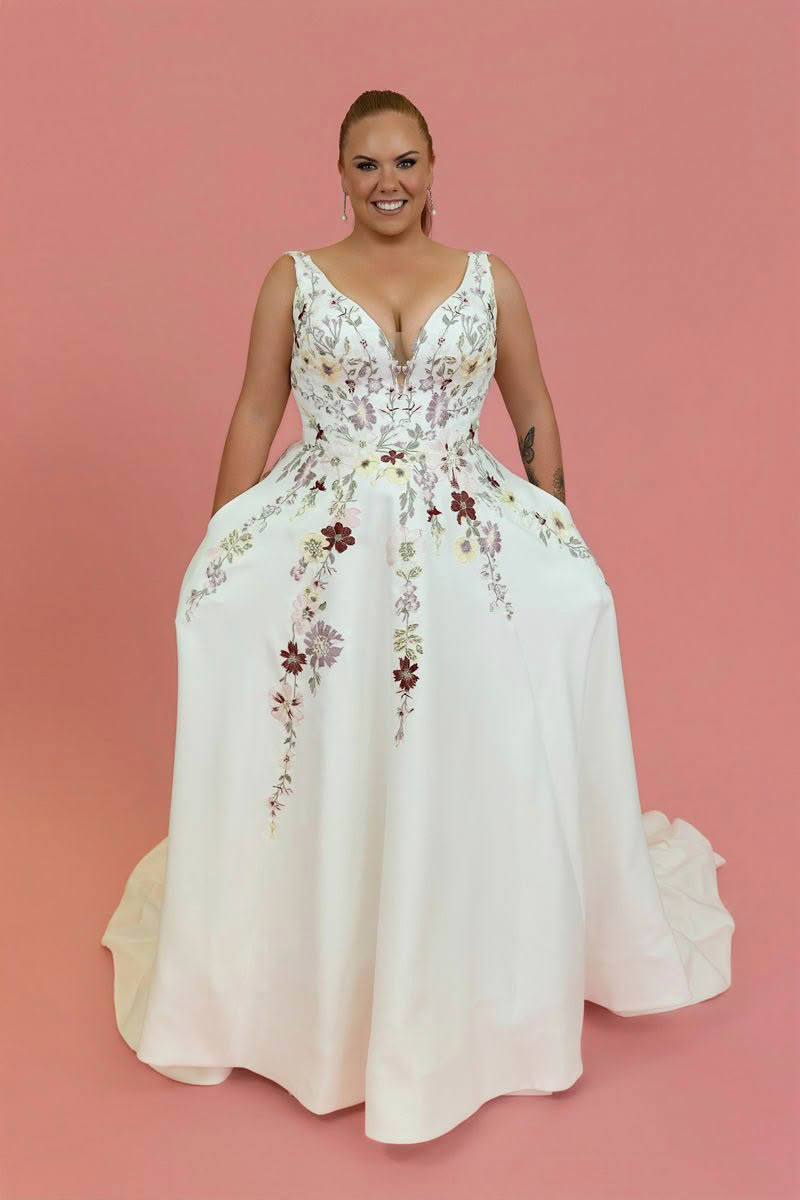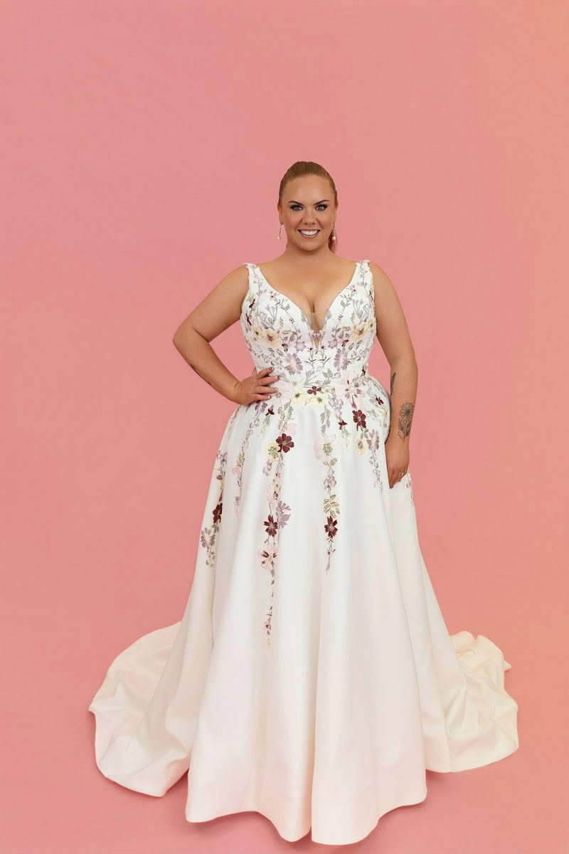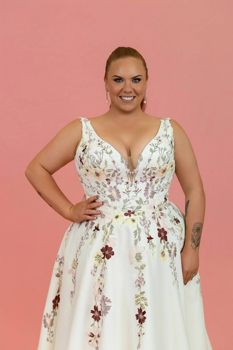 The full A-line skirt moves beautifully with every step, giving the gown an effortlessly romantic feel while allowing the intricate floral embroidery to take centre stage. Radiant Star is perfect for brides who want something unique, romantic, and unforgettable.