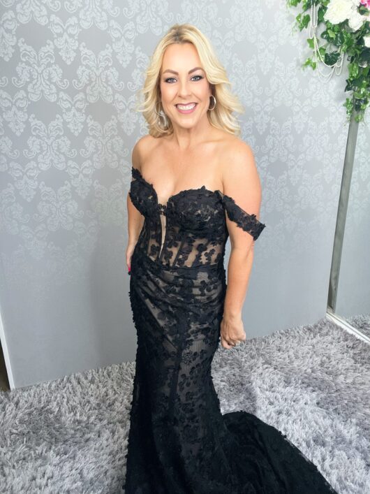 Introducing Annalise, a stunning wedding dress that combines bold sophistication with intricate detail. Available in both ivory and black, this gorgeous matte full sheet lace fit-and-flare gown is a statement of elegance and style. The strapless design features an illusion bodice with exposed boning, creating a structured yet ethereal look, while the deep V-plunge neckline adds a touch of daring allure. The off-the-shoulder straps offer a romantic, soft finish that balances the gown’s dramatic details. Annalise is the perfect choice for the bride who wants to stand out with modern glamour and a hint of edge.