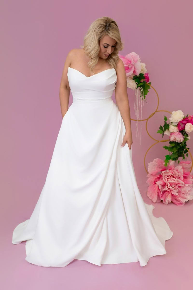 Cherie is effortlessly chic. With a classic sweetheart neckline and strapless design, this gown is tailored to flatter the figure before flaring into a voluminous skirt. Finished with chic draping and hidden pockets, Cherie combines timeless bridal elegance with modern practicality, the perfect gown for brides who want the best of both worlds.